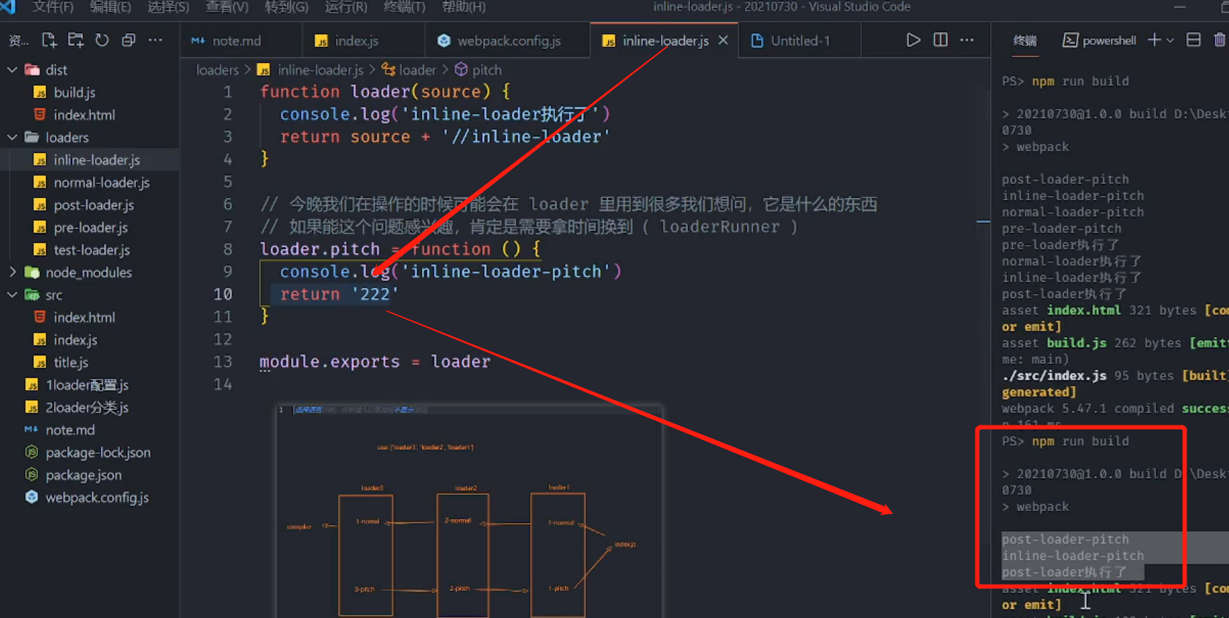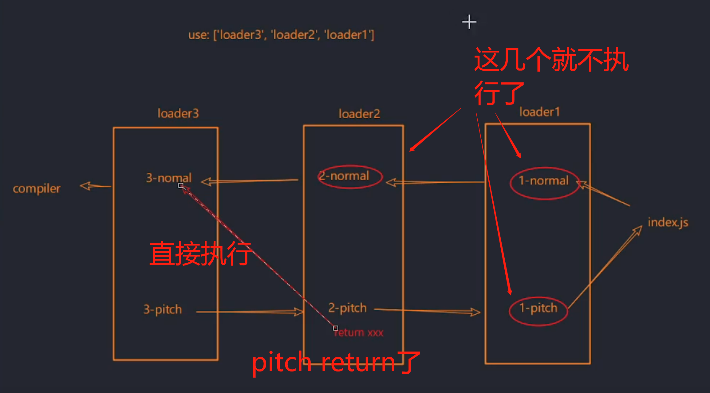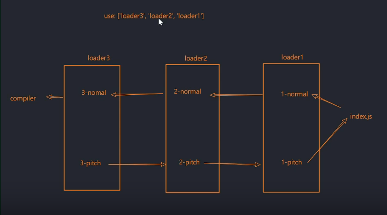 loader一般只需要 写loader本身即可,不过每个loader 其实还有一个pitch,作用见图